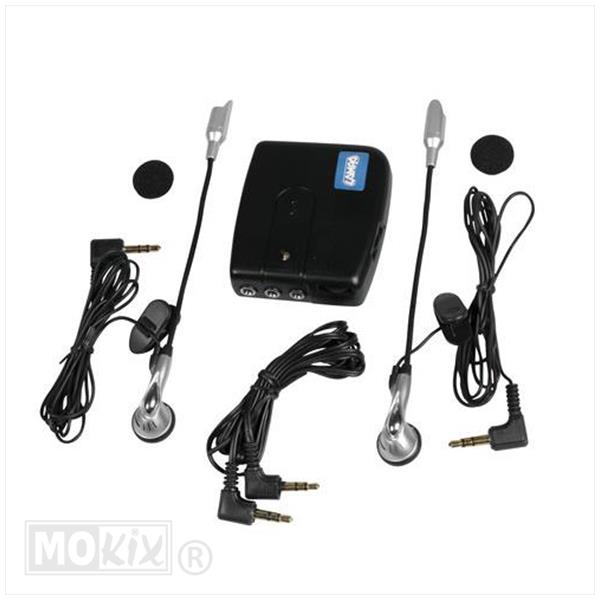 Dit is een Intercom tot 2 personen (indien tweede set erbij aangeschaft is voor uw passagier) ook dient u er een headset bij te bestellen artikel nummer: B219-90251!