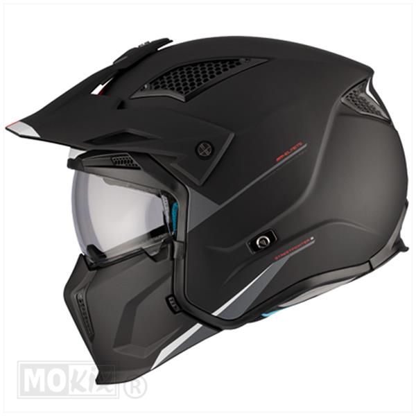 Helm bestellen zoek dan het bestelnummer dat bij de maat hoort! Deze stoere STREETFIGHTER convertible 22.06 helm heeft een uitneembare en wasbare binnenvoering (met blauwe accenten). Deze helm heeft een snel en gemakkelijk te verwijderen binnenvizier (V-16) en kent 2 schalen: S en M-XXL met extra go-pro camera-aanpassing en 2 kleine klepjes om de ventilatiedelen af te sluiten. Beschikbare maten S - XXL in mat zwart standaard geleverd met helder vizier.