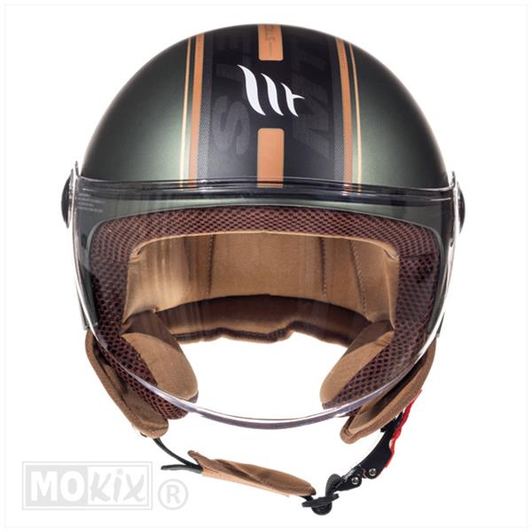 Helm bestellen: let er op dat u het goede bestelnummer bij de gewenste maat kiest! De MT Street Entire mat Groen/Bruin is een ECE gekeurde Jet helm, met 1 helder (lang) vizier, hiervoor is ook een smoke (grijs/bruin) vizier te verkrijgen. De Street Entire jethelm is leverbaar in meer kleuren bijv: mat zwart, kahki groen.